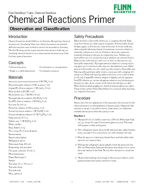Download Flinn Chemtopic Lab Chemical Reaction Answer Key Kindle Editon